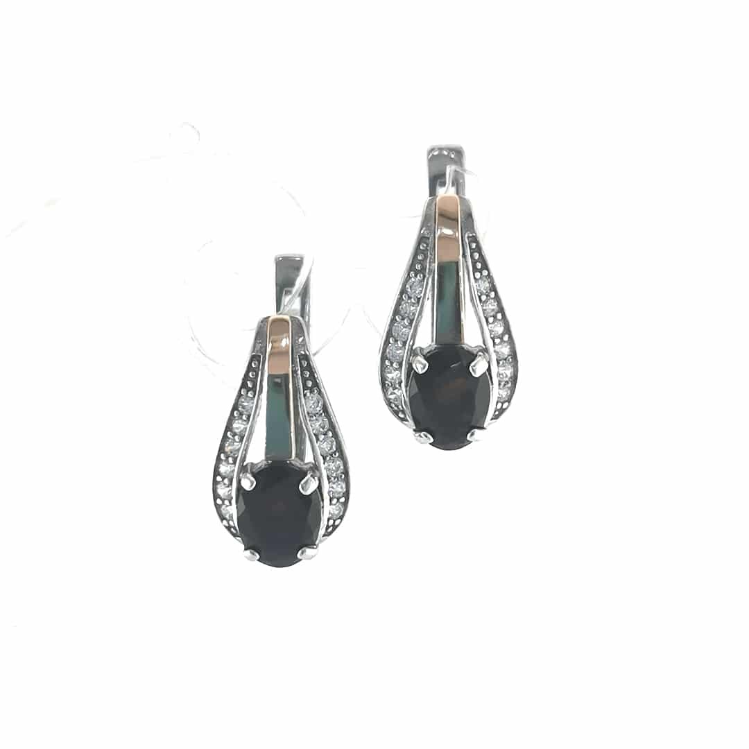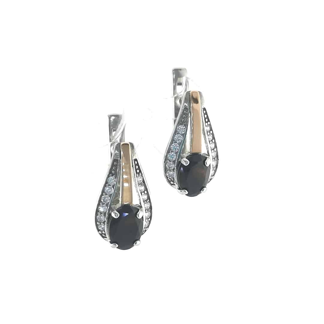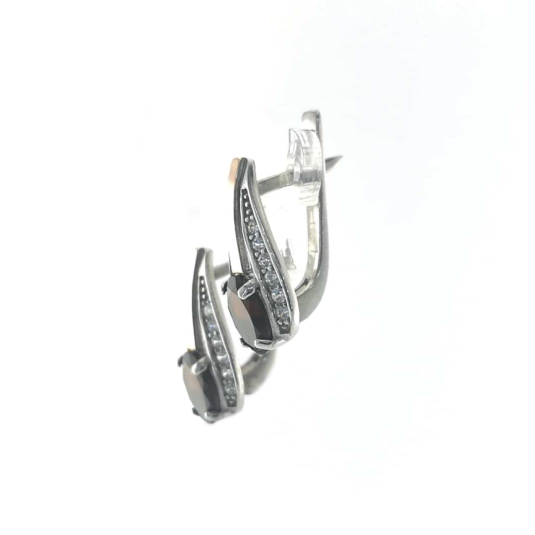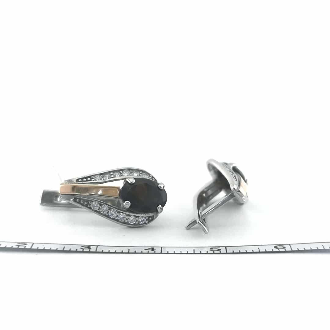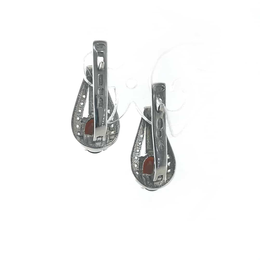 Sidabriniai auskarai su auksu (0.05g 375 prabos), granatu(0.44g) ir cirkoniu