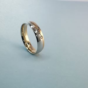 Vestuvinis žiedas ,,Bangelė” su cirkoniu Price range: 646 € through 758 €Pasirinkti
